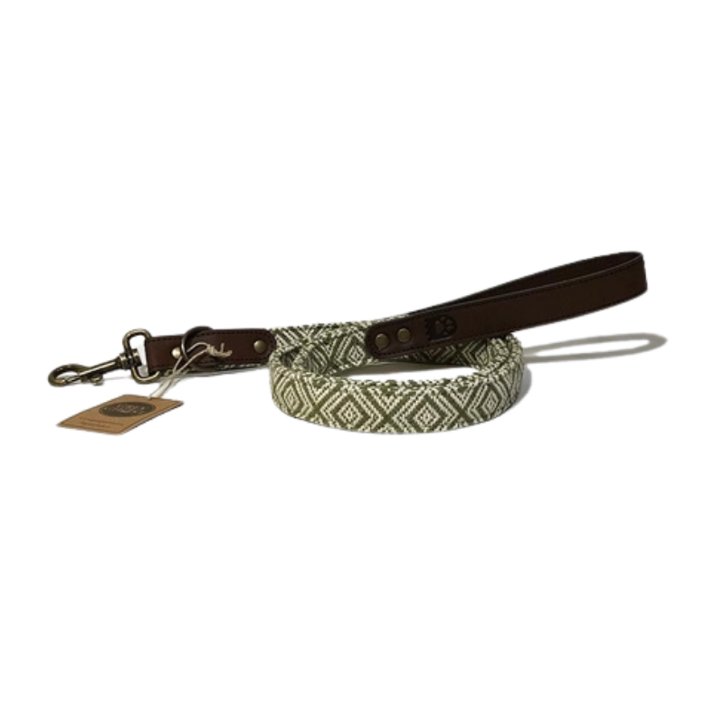 Liebevoll und achtsam handgefertigte vegane Hunde-Leine aus Baumwolle kombiniert mit hochwertigem Kunstleder im Boho-Chic Stil.